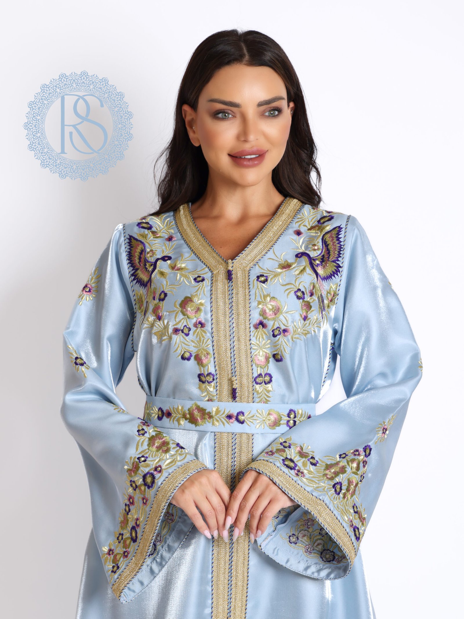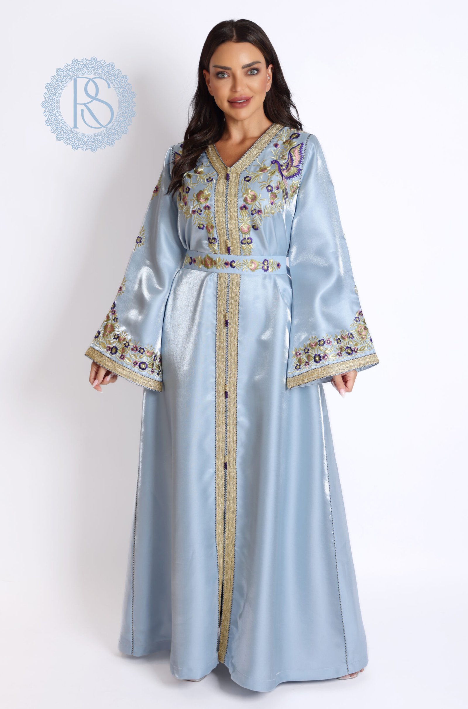 قفطان مطرز بألوان زاهية مع حزام