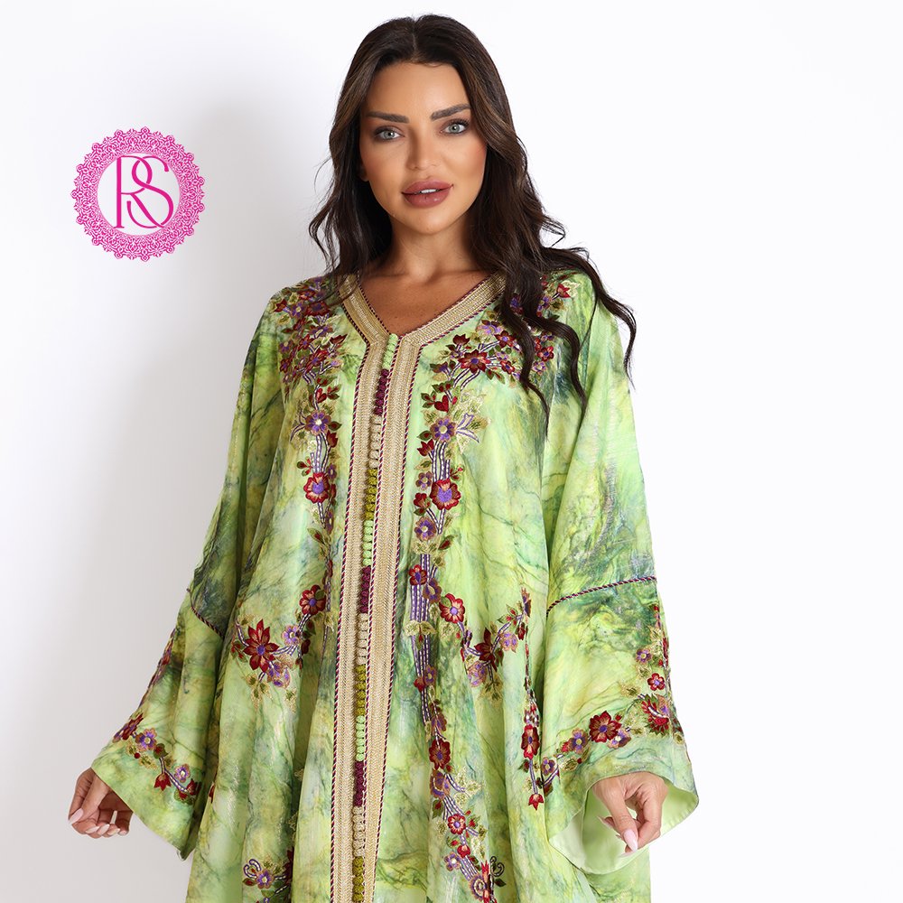 قفطان مغربي من القماش الحرير بقصة عربية مميزة