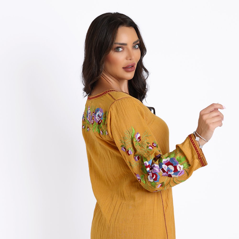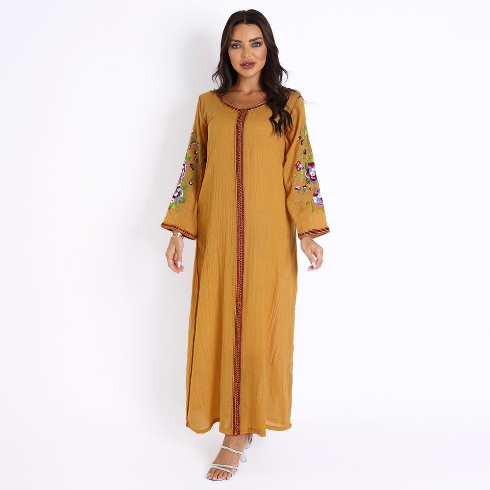 قفطان صيفي من قماش لينن الخفيف مطرز مع شغل السفيفة الحرير